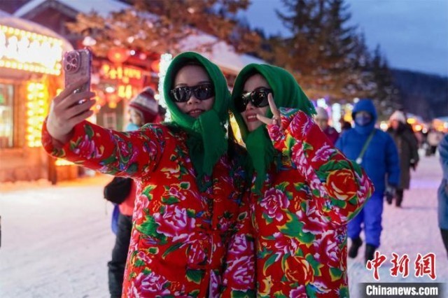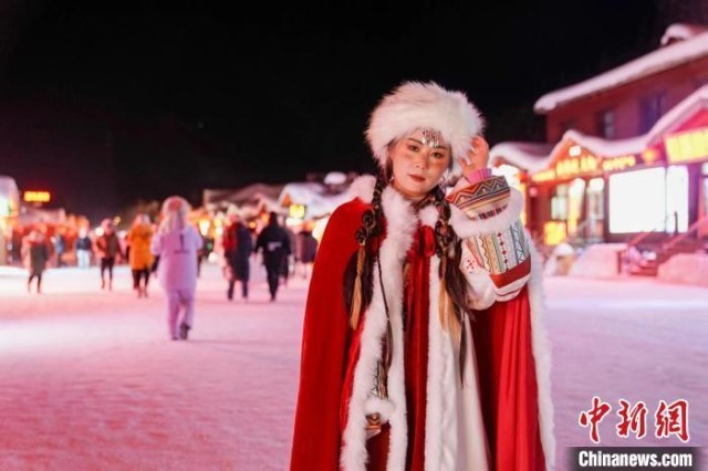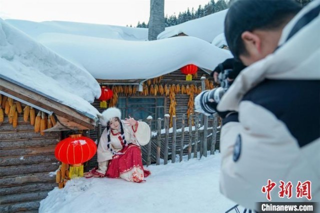 漫步在雪乡著名的雪韵大街上,随处可见妆容精致、身穿盛装的各地游客,正在摄影师的指导下摆出造型、绽放笑容,不仅令美景、美人定格成一张张美照,也让景区风貌更加“上镜”。
