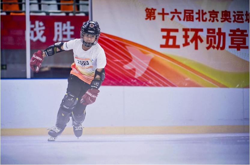 五环勋章挑战赛是北京奥促会精心策划的一项聚焦青少年的赛事,分为U12和U9两个组别,每队由5人组成,分别参加田径400米竞速、冰上绕行障碍技巧、篮球技巧(运球传球、投篮)、自行车绕桩技巧以及足球技巧(折返跑、带球过障碍、射门),通过累计完赛用时排出次序。本次比赛吸引100支队伍报名参与。