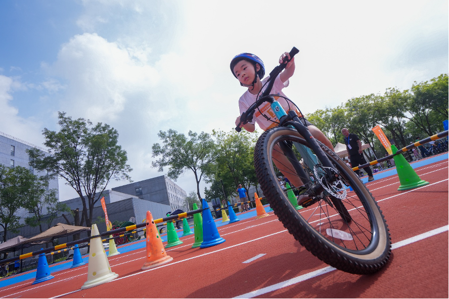 随着哨音响起,小选手在田径赛场上奋力冲刺,在冰场障碍间闪转腾挪,在篮球场上运球、投篮一气呵成,在自行车比赛区“丝滑”绕桩骑行,在足球场盘带、射门尽展豪情……赛场边站满了家长,大家化身最强啦啦队,为参赛选手加油助威,仿佛置身一场火热的校园运动会。
