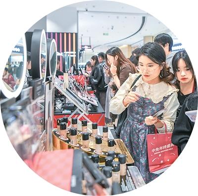 1月2日,游客在cdf海口日月广场免税店内选购商品。