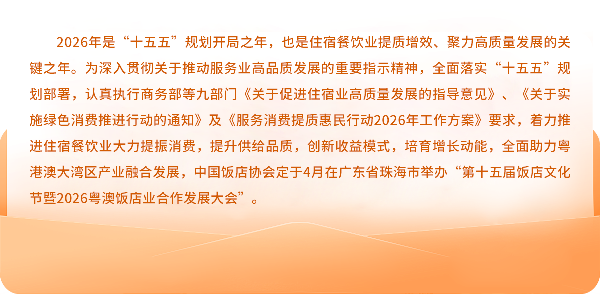 第十五届中国饭店文化节暨2026粤澳饭店业合作发展大会,期待与您相聚大湾区,共话新消费,共探新融合,共谋新增长。
