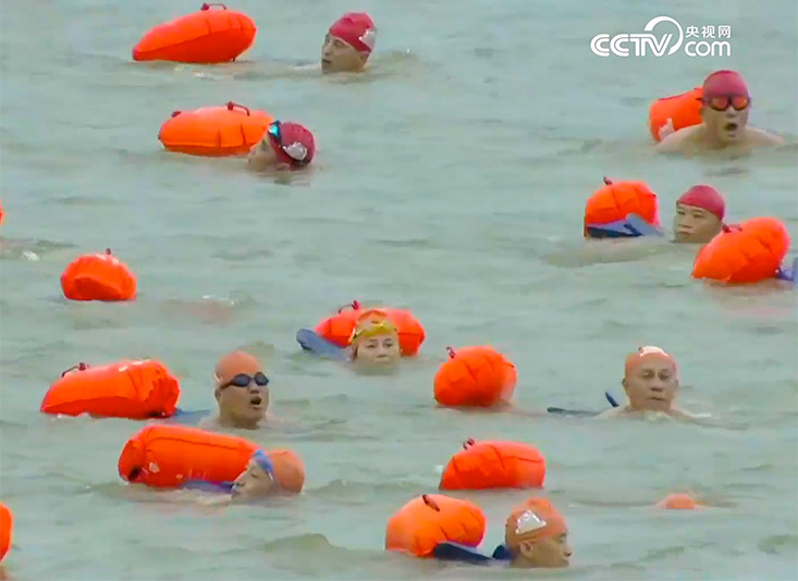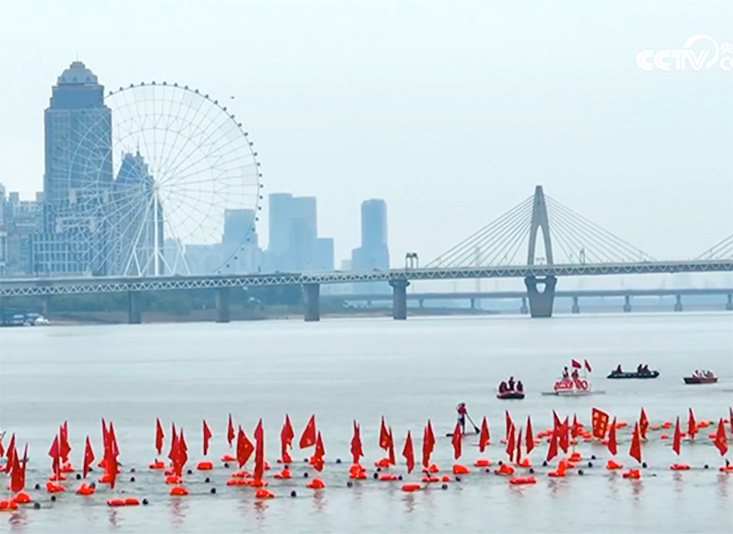 江西南昌水域非常丰沛广阔,眼下,一场千人横渡赣江的活动正在举行。